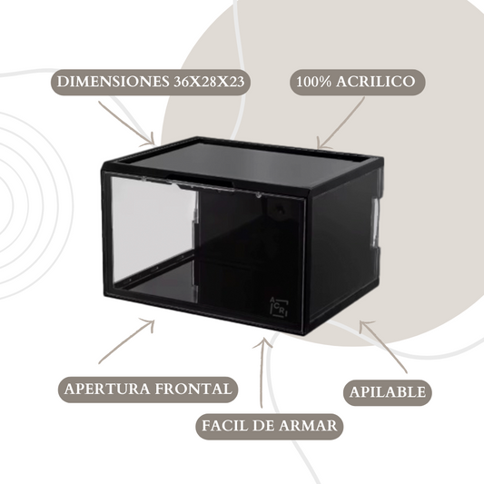 Caja organizadora de zapatos negra apilable – Para zapatillas y accesorios
