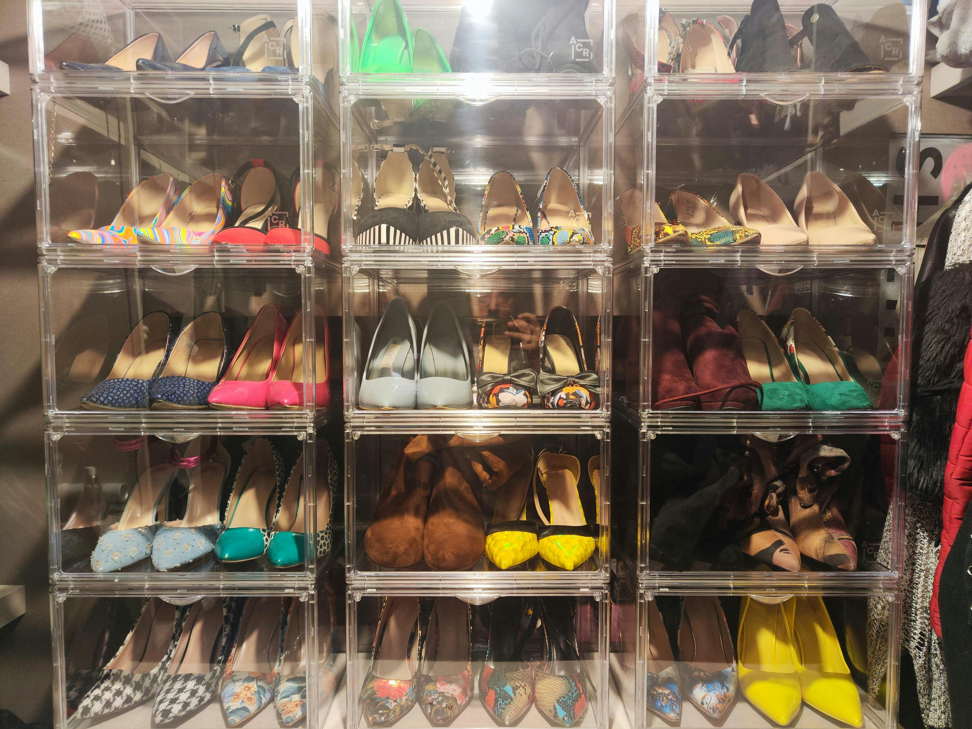 Diseño apilable, modular y funcional para zapatillas, tacones y más